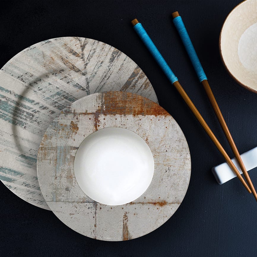 Siamo orgogliosi di vedere alcune delle grafiche realizzate per SATURNIA prendere forma sulle collezioni di stoviglieria.