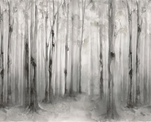 The Wolf Inside è una collezione di carte da parati che immerge lo sguardo in un paesaggio boschivo acquerellato, fitto di alberi verticali e sfumature atmosferiche. Le tre varianti cromatiche trasformano la foresta in un luogo dell’anima: ora ombrosa e silente, ora luminosa e solare, ora verdissima e selvaggia.